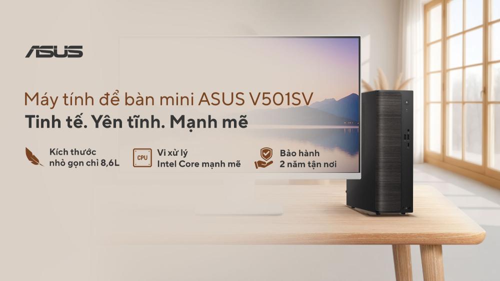 ASUS Việt Nam chính thức giới thiệu dòng máy tính để bàn ASUS V501 Series bao gồm ASUS V501MV (15L) & ASUS V501SV (8.6L), lựa chọn mới cho người dùng gia đình, văn phòng nhỏ và hộ kinh doanh cần một bộ máy tính để bàn đồng bộ ổn định, dễ triển khai và dễ bảo trì. Với thiết kế mini tower và Small Form Factor (SFF – máy tính có kích thước nhỏ) gọn gàng, cấu hình linh hoạt từ Intel® Core™ 3 đến Core™ 7, cùng khả năng nâng cấp RAM DDR5 lên đến 64GB, V501 đáp ứng tốt các nhu cầu làm việc, học tập và giải trí đa phương tiện trong nhiều năm sử dụng.