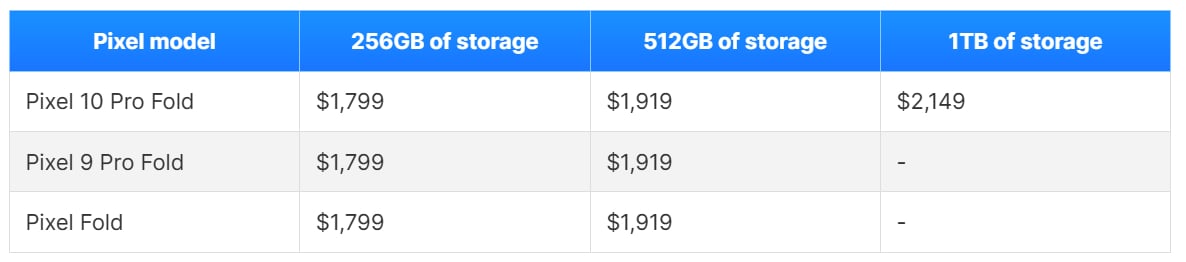 Cùng phân khúc còn có Google Pixel 10 Pro Fold, phiên bản mới nhất trong dòng Fold của Google, kế nhiệm Pixel Fold và Pixel 9 Pro Fold.