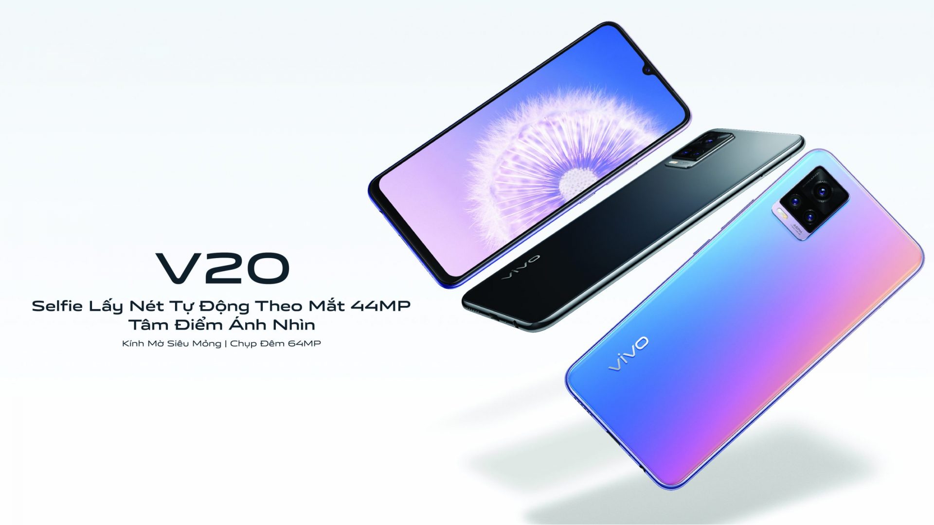 vivo V20 là chiếc điện thoại mới nhất của vivo tại Việt Nam, sở hữu thiết kế Kính Mờ Siêu Mỏng và tính năng Selfie Lấy Nét Tự Động Theo Mắt, đi cùng 2 phiên bản màu sắc Dạ Khúc Jazz và Giai Điệu Hoàng Hôn.