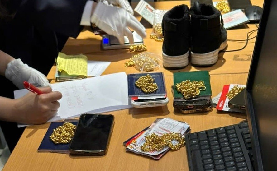 Các đối tượng vận chuyển trái phép gần 7 kg nghi vàng với thủ đoạn đeo trên người hoặc cất giấu trong giày hòng trốn tránh sự kiểm soát của lực lượng chức năng.