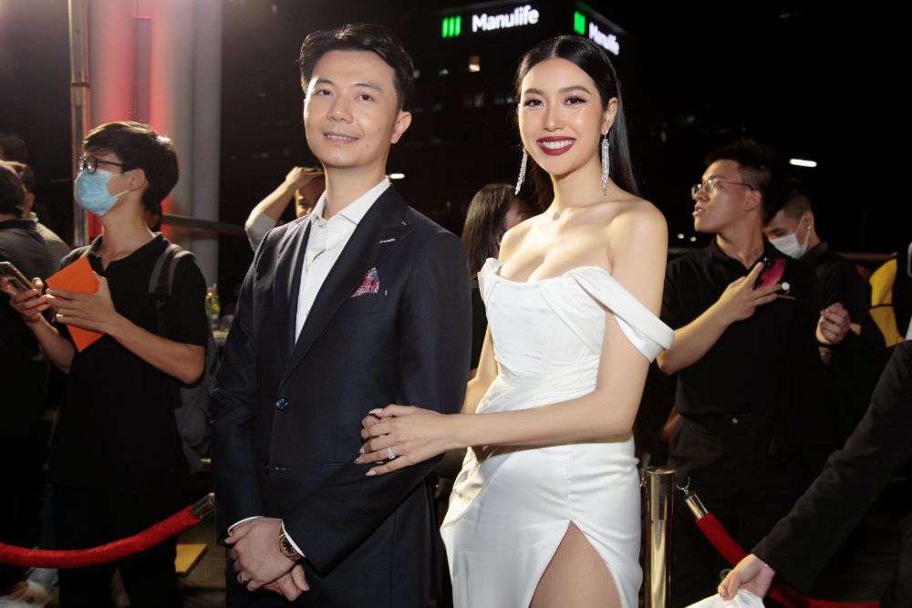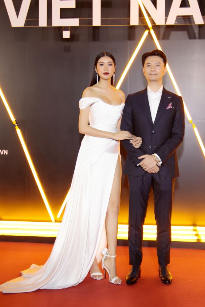 Tháp tùng Thuý Vân đi dự sự kiện là ông xã Nhật Vũ. Doanh nhân xuất hiện lịch lãm trong trang phục vest, tươi cười và không ngại thể hiện sự quan tâm với vợ mình. Cặp đôi nhận được nhiều lời khen vì độ đẹp đôi và hạnh phúc.