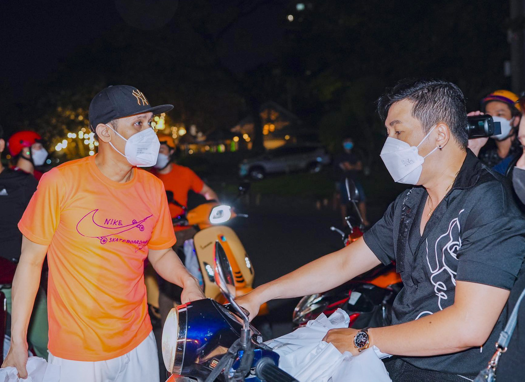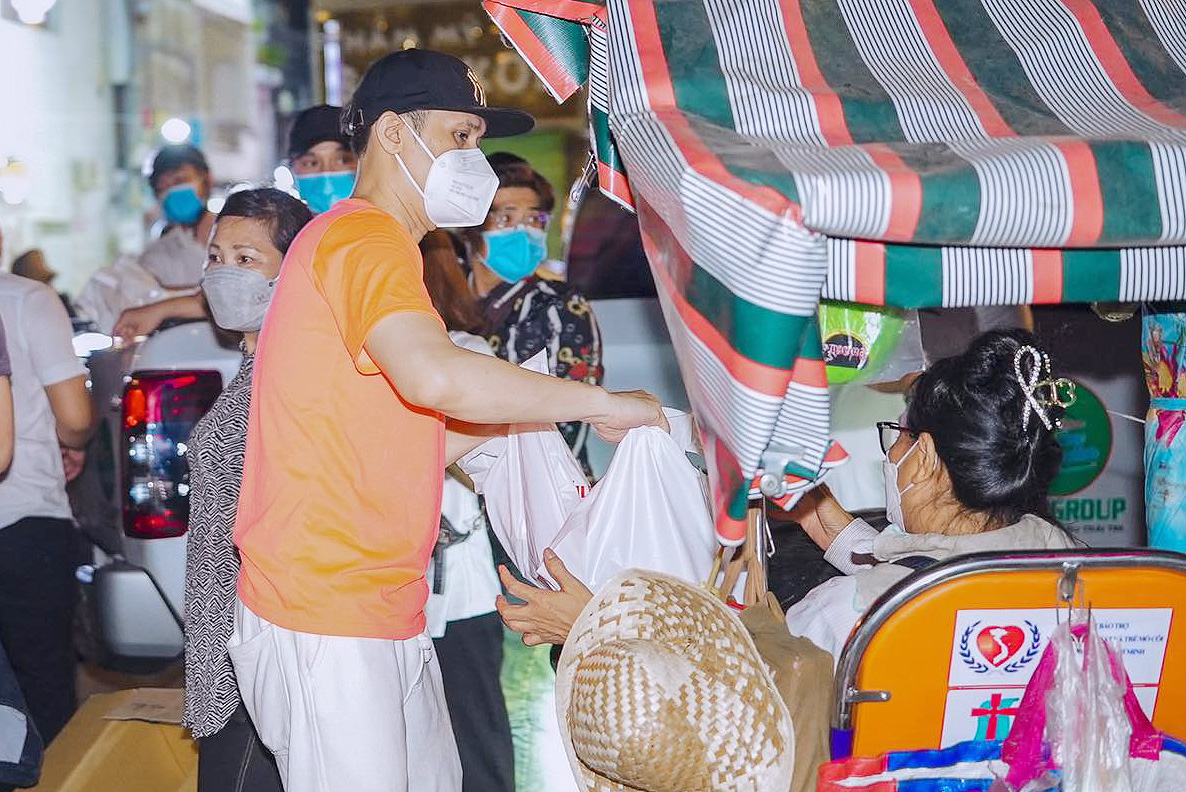 Trong không khí se lạnh đêm khuya. Nguyên Vũ cùng các tình nguyện viên của nhóm thiện nguyện đã đi khắp các con đường lớn nhỏ, len lỏi nhiều tuyến đường, con hẻm để gửi tặng quà cho những cụ già, người lang thang vô gia cư trong đêm lạnh  ở TP.HCM.