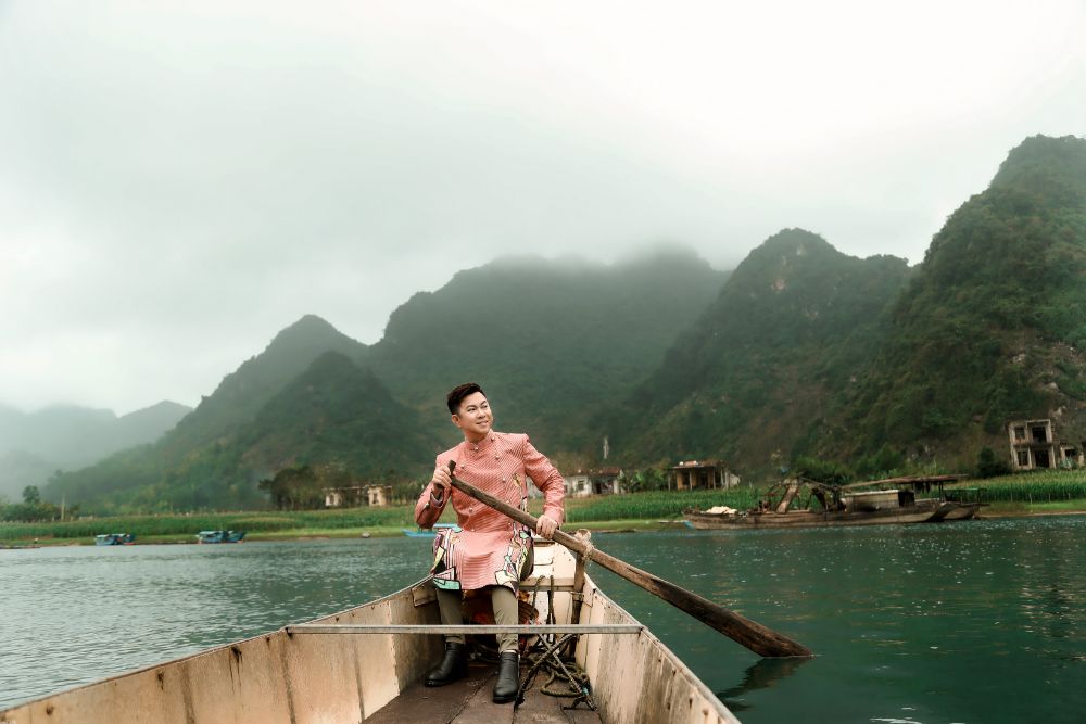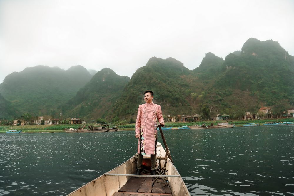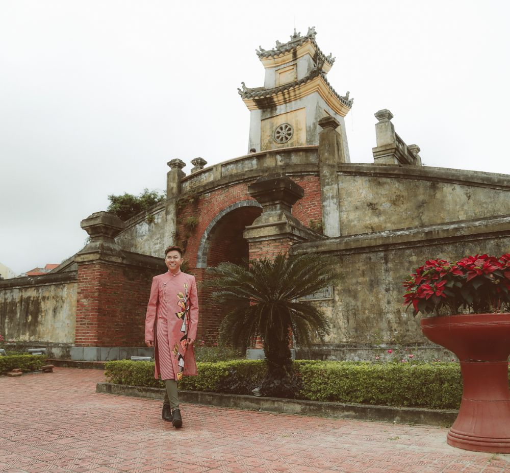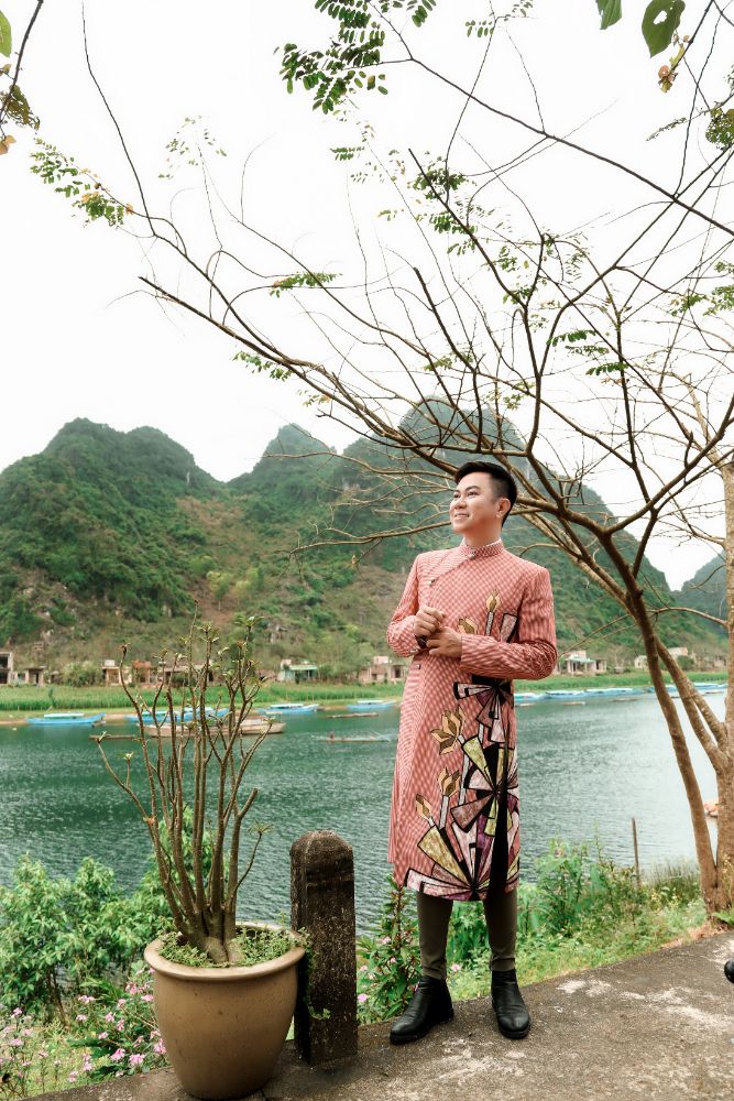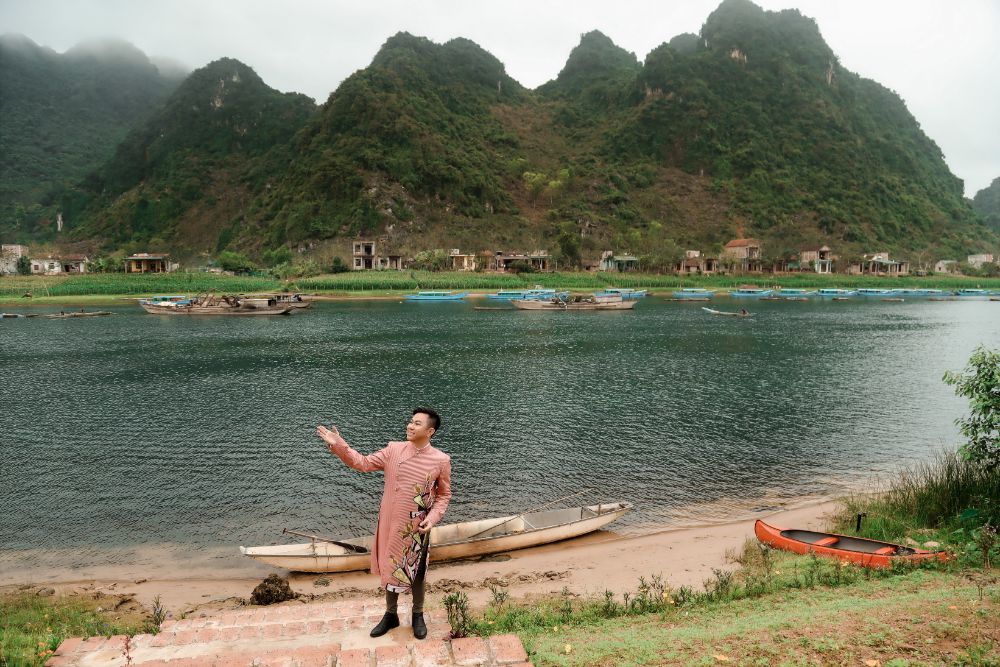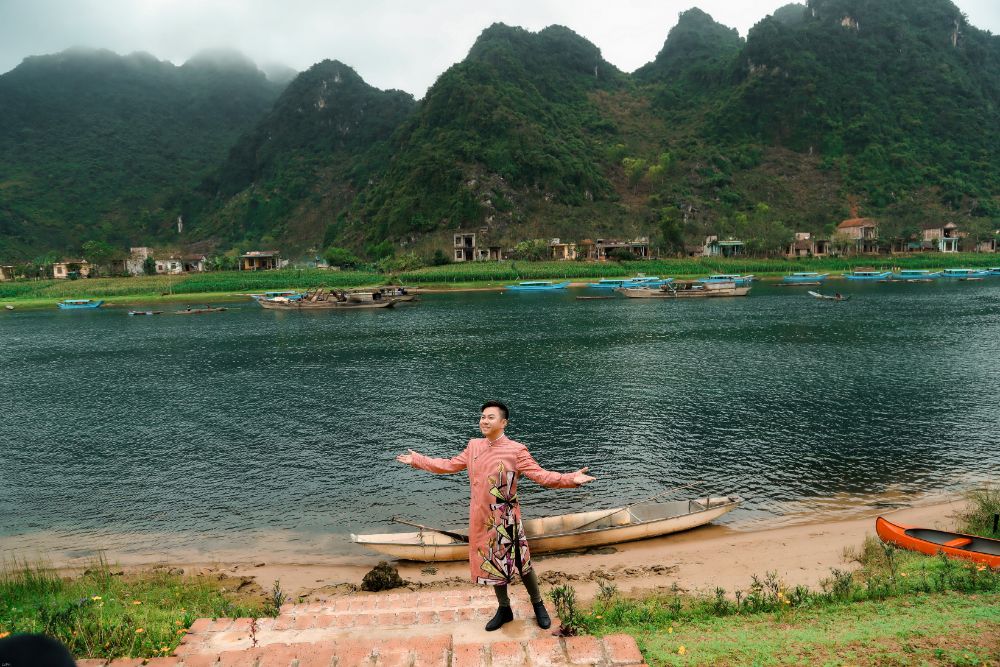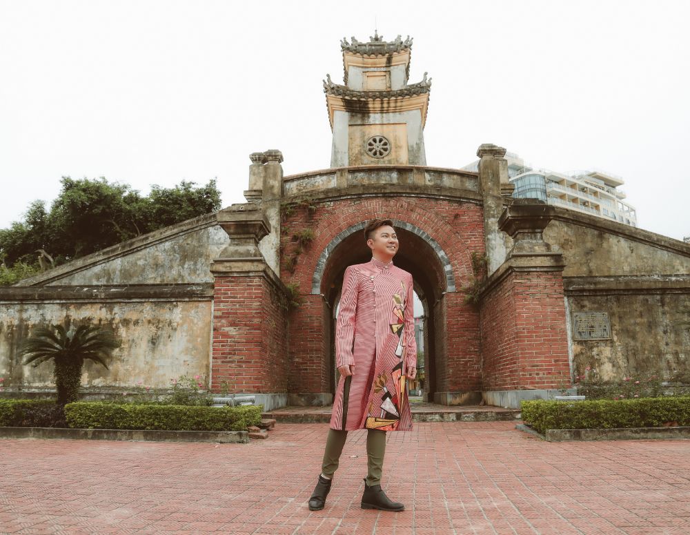 BST “Đại sứ Áo dài Việt Nam” của NTK Việt Hùng mà Ca sỹ Quốc Đại diện trên mình được chụp trên dòng sông Son và trên những thành quách đã ghi tạc dấu ấn thời gian của mảnh đất kinh kỳ xưa Quảng Bình.