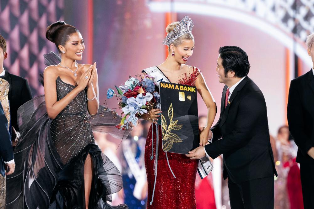 - Impactful Beauty: Miss Cosmo Namibia – CASSIA SHARPLEY được trao bởi ông Hà Huy Cường – Đại diện Ngân hàng TMCP Nam Á