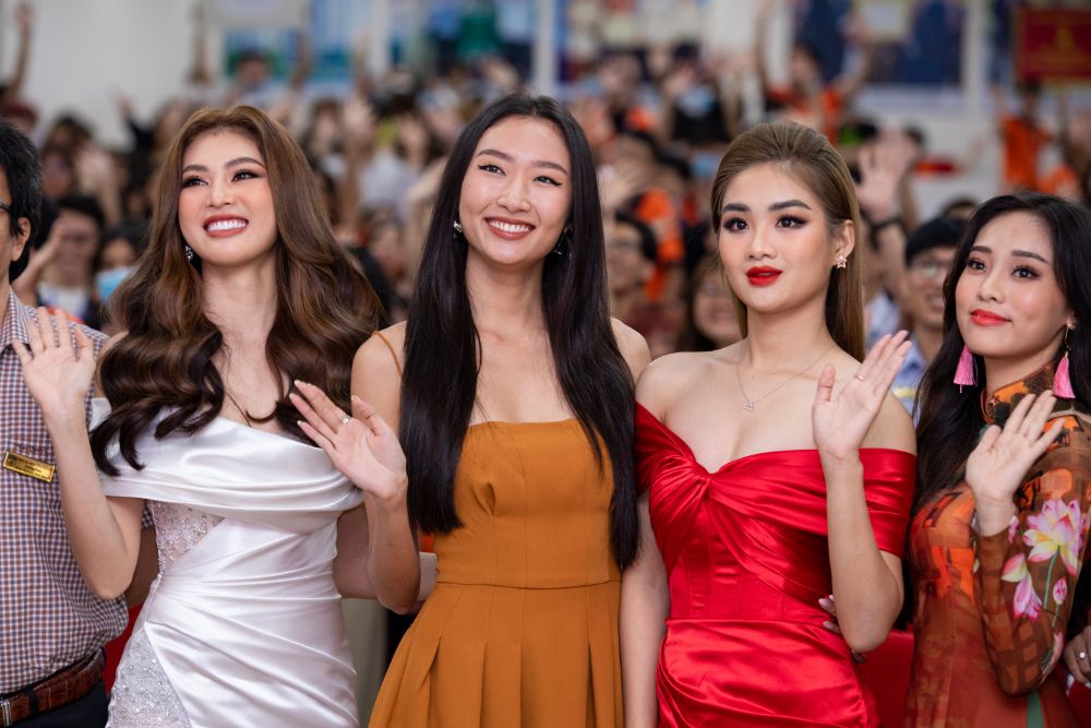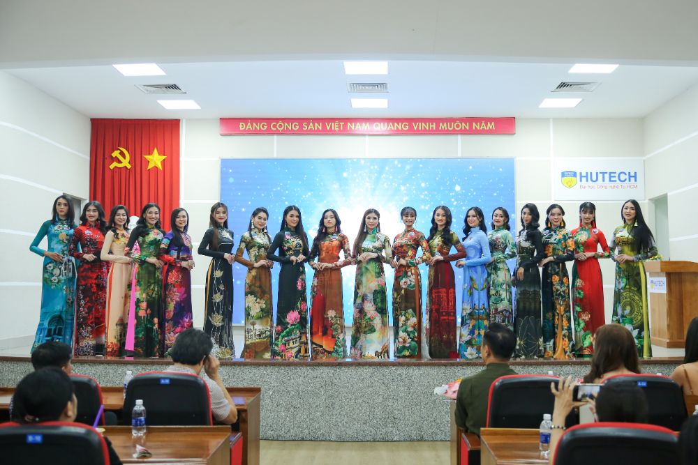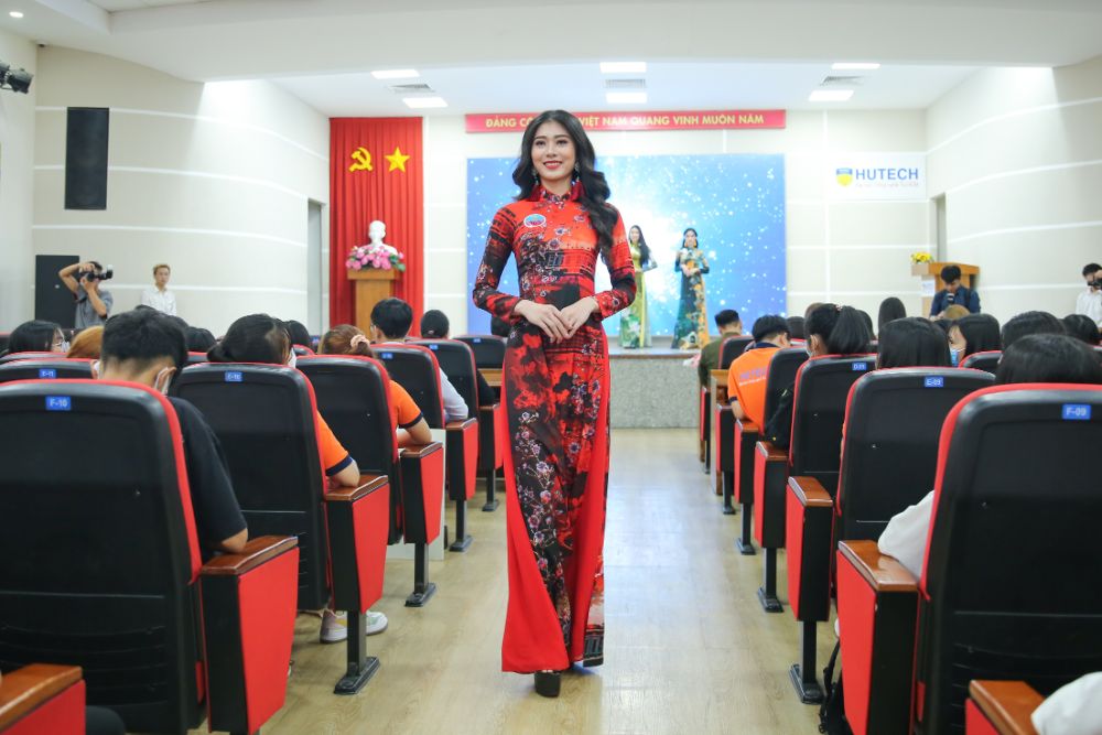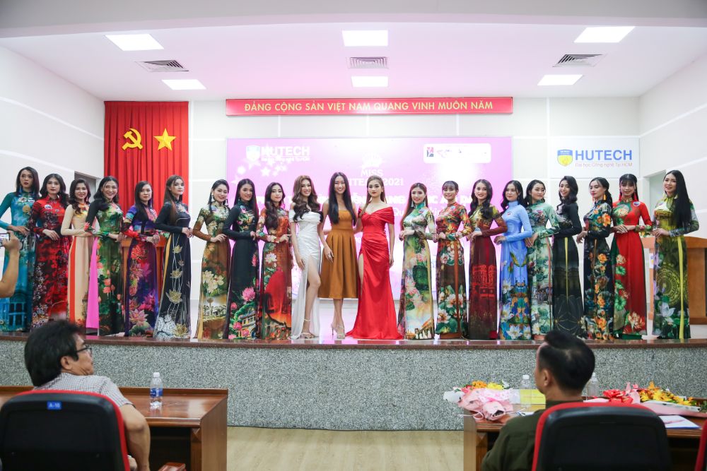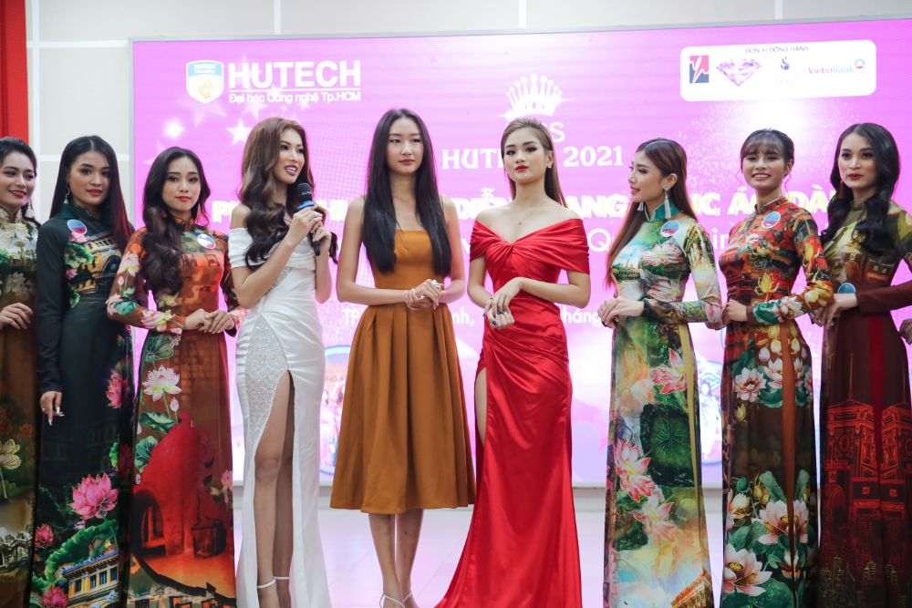 Mới đây, Á hậu 2 Hoa hậu Việt Nam 2020 Nguyễn Lê Ngọc Thảo, Hoa hậu Sinh viên Thế giới 2019 Nguyễn Thị Thanh Khoa, Á khôi 1 Hoa khôi Du lịch Việt Nam 2020 Bùi Minh Anh và NTK Việt Hùng đã cùng hội ngộ trên “ghế nóng” phần thi Trang phục Áo dài cuộc thi Miss HUTECH 2021 của Trường Đại học Công nghệ TP.HCM (HUTECH).