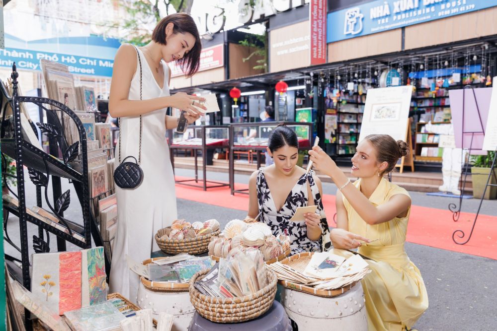 Hoa hậu Mina Sue Choi cùng hai Á hậu Andrea Aguilera và Sheridan Mortlock chọn đi ngắm Bưu điện TP.HCM rồi ghé đường sách để mua các món quà lưu niệm làm quà tặng cho bạn bè, người thân…