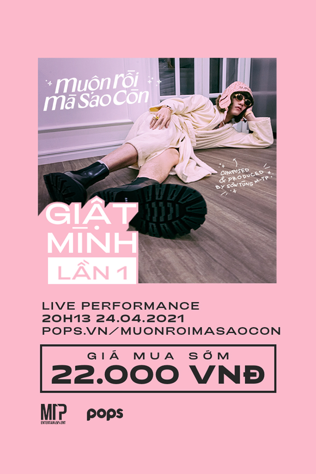 Sau nhiều ngày chờ đợi, cuối cùng những thông tin chính thức về Live Performance Giật Mình Lần 1 – Muộn Rồi Mà Sao Còn cũng được Sơn Tùng M-TP hé lộ trên trang cá nhân của mình. Theo đó, sự kiện sẽ diễn ra chính thức vào lúc 20h13 ngày 24.04.2021 và được phát độc quyền trên nền tảng website giải trí POPS.vn.
