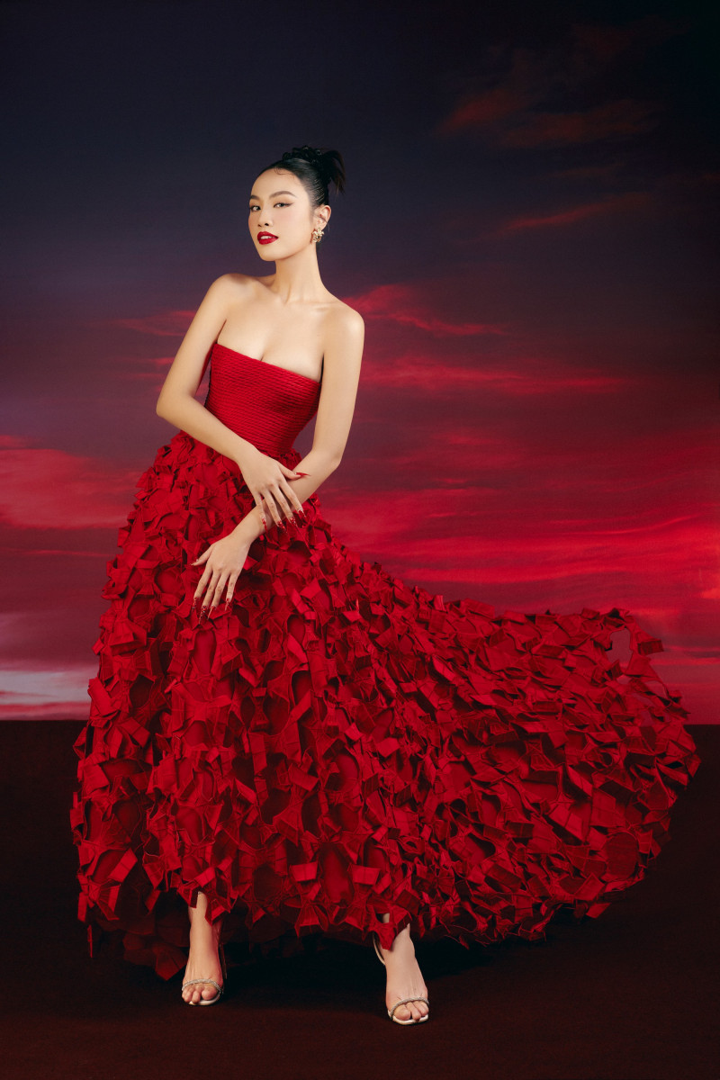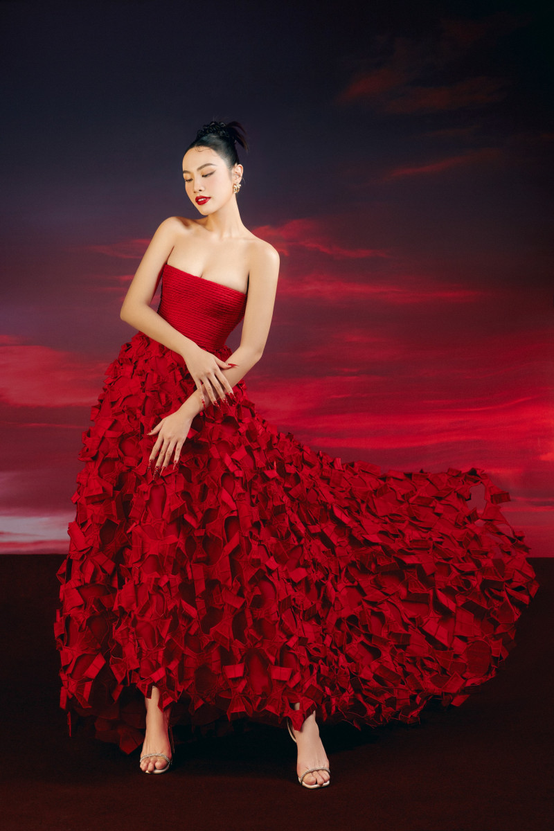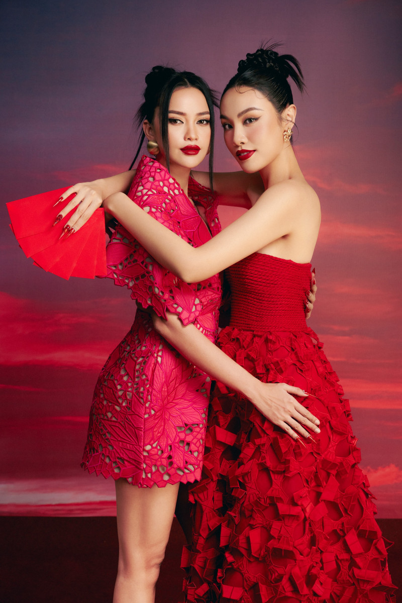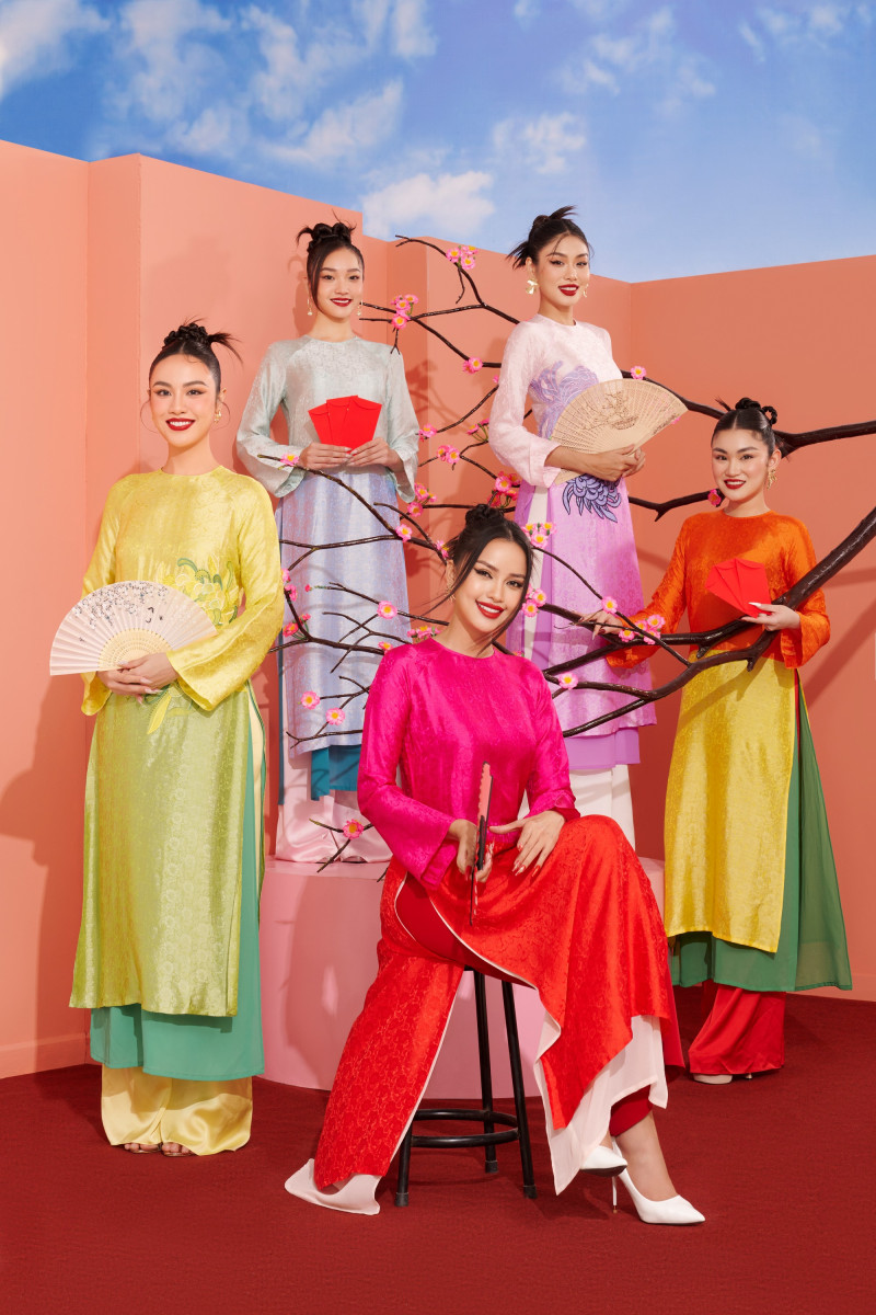Với màu sắc chủ đạo là màu đỏ và hồng, top 3 Hoa hậu Hoàn vũ Việt Nam 2022 thể hiện trọn vẹn không khí tươi mới và rực rỡ của mùa xuân nhưng không kém phần quyền lực, sắc sảo và cá tính. Phần phông nền của bộ ảnh được đầu tư chỉn chu và kỹ lưỡng, là những mảng màu đỏ và cam hòa quyện với nhau ánh lên vẻ đẹp rạng rỡ của hoàng hôn ngày xuân. Trong bộ ảnh, bên cạnh hình ảnh của Hoa hậu Ngọc Châu, Á hậu Lê Thảo Nhi và Á hậu Huỳnh Phạm Thủy Tiên còn có sự xuất hiện của Hoa hậu Doanh nhân Việt Nam Quốc tế Diễm My và Hoa hậu Hoàn cầu Việt Nam 2022 Phạm Kim Ngân. Các nàng hậu thân thiết như những người chị em trong nhà, nền nã trong tà áo dài đón Tết trong concept thứ 2.