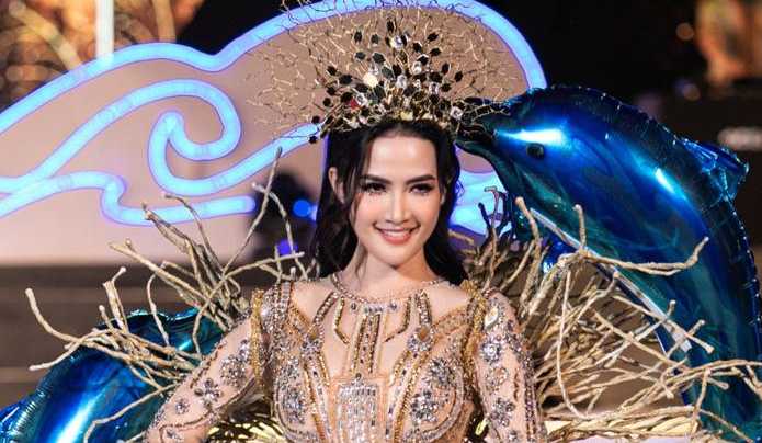 Nói về sự kiện đình đám tại Nha Trang, nhà thiết kế Nam Phong đã “đo ni đóng giày” trang phục như nữ thần biển màu ngà cho Phan Thị Mơ. Anh cho biết thiết kế được đính nhiều đá phát sáng, kết cườm thủ công rất tỉ mỉ, tốn khá nhiều công sức và chi phí. Phần đuôi váy được tạo độ phồng, bồng bềnh với những nếp gấp tinh tế mô phỏng những con sóng vĩ đại của đại dương phối với vương miện lấy cảm hứng từ san hô càng khiến tổng thể hình ảnh của người đẹp trở nên uy nghi, rực rỡ nhất có thể.