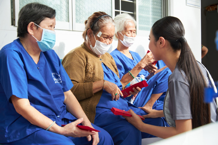 Không chỉ trao tặng quà, nàng hậu còn gửi lời hỏi thăm sức khỏe của các cụ già và vui chơi cùng các em nhỏ tại khu trò chơi ngay trung tâm. Thủy Tiên còn gửi những lời hỏi thăm, những cái bắt tay cùng với những túi lì xì nho nhỏ chứa đựng tấm lòng của cô với các bệnh nhân tâm thần tại trung tâm. Thủy Tiên vô cùng xúc động khi chia sẻ: “Tiên rất hạnh phúc khi trích một phần tiền thưởng của mình để hỗ trợ những trẻ em, cụ già và các bệnh nhân tâm thần có hoàn cảnh đặc biệt. Đây là một trung tâm bảo trợ xã hội vô cùng đặc biệt, ban Giám đốc không chỉ chăm sóc những người có hoàn đặc biệt mà còn đi tìm và thu nhận họ. Tiên cảm thấy rất may mắn khi được hỗ trợ những bệnh nhân tâm thần, những đối tượng chịu ảnh hưởng bởi sức khỏe tinh thần mà dự án của Tiên vô cùng quan tâm.”