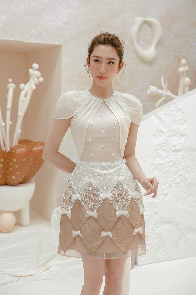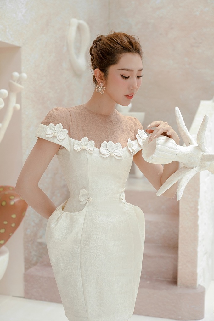 Trong bộ ảnh mới nhất, diễn viên Thúy Ngân theo đuổi phong cách đài các, sang trọng và không kém phần nữ tính. Cùng với lối make-up trong trẻo, tông cam – hồng nhẹ nhàng, Thúy Ngân tỏa sáng trong những thiết kế đầm thanh lịch, đính những chi tiết hoa tinh tiết.