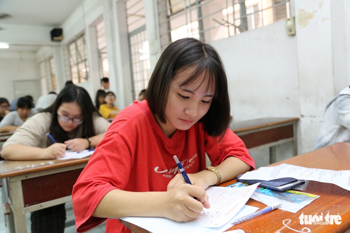 Thí sinh làm thủ tục trước giờ thi đánh giá năng lực của ĐH Quốc gia TP.HCM năm 2018. Năm 2019, ĐH Quốc gia TP.HCM dự kiến sẽ dành đến 60% chỉ tiêu cho phương thức xét kết quả thi đánh giá năng lực – Ảnh: NHƯ HÙNG