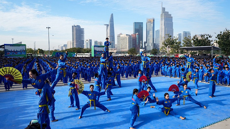 Chương trình đồng diễn võ nhạc Vovinam với sự tham gia của 60.000 học sinh từ 165 điểm trường tại Thành phố Hồ Chí Minh đã chính thức xác lập kỷ lục kép Việt Nam và thế giới cho nội dung “Chương trình đồng diễn võ nhạc Vovinam trực tiếp kết hợp trực tuyến tại các điểm trường có số lượng học sinh tham gia đông nhất Việt Nam và thế giới”. Trong đó, 5.000 học sinh thuộc 15 trường tại TP.HCM đã có mặt tại Công viên Bờ sông Sài Gòn và cùng 55.000 học sinh khác từ 150 trường trên địa bàn thành phố tham gia đồng diễn.