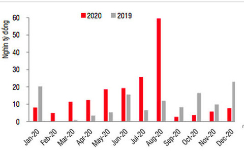 Lượng trái phiếu bất động sản phát hành 4 tháng cuối năm 2020 chỉ là 22,6 nghìn tỷ đồng, bằng 38% lượng phát hành của riêng tháng 8/2020 và bằng 12,4% lượng phát hành cả năm 2020, trong khi 4 tháng cuối năm 2019 là cao điểm phát hành trái phiếu bất động sản với lượng phát hành chiếm 47% cả năm 2019. Diễn biến này không bất ngờ khi kể từ 1/9/2020, theo Nghị định 81, các lô phát hành riêng lẻ phải cách nhau tối thiểu 6 tháng, tổng dư nợ phát hành không vượt quá 5 lần vốn chủ sở hữu và các điều kiện về hồ sơ phát hành chặt chẽ hơn.