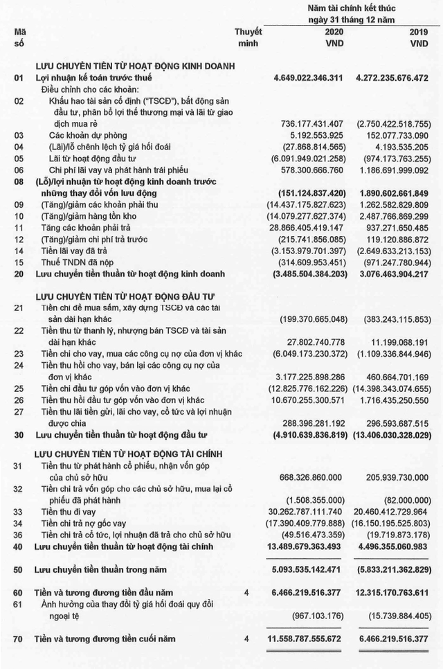 Trong năm, nợ vay ngắn hạn của công ty tăng từ 8.445 tỷ đồng lên 14.544 tỷ đồng; nợ vay dài hạn tăng từ 26.126 tỷ đồng lên 34.357 tỷ đồng.