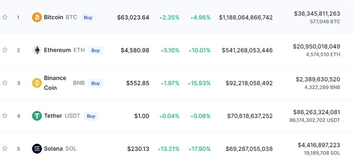Vào thời điểm 15h00ngày 3/11 (theo giờ Việt Nam), giá Bitcoin theo ghi nhận của CoinMarketCap đang giao dịch ở mức 63.023 USD, tăng 2,35% so với thời điểm cách đó 24 tiếng và 4,96% so với 7 ngày trước. Trong 24 giờ qua, có lúc giá Bitcoin đã chạm ngưỡng 64.155 USD, mức cao nhất trong 1 tuần trở lại đây.
