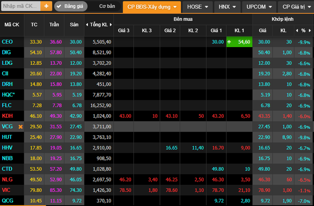Nhiều mã Bất động sản – Xây dựng giảm sàn “trắng bên mua”