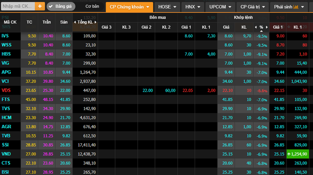 Các chỉ số tiếp tục lùi sâu trong phiên chiều khi áp lực bán tháo lan rộng trên khắp thị trường. Rổ VN30 ghi nhận SSI, STB giảm sàn, POW, PLX, GVR cũng chạm mức giảm hết biên độ.
