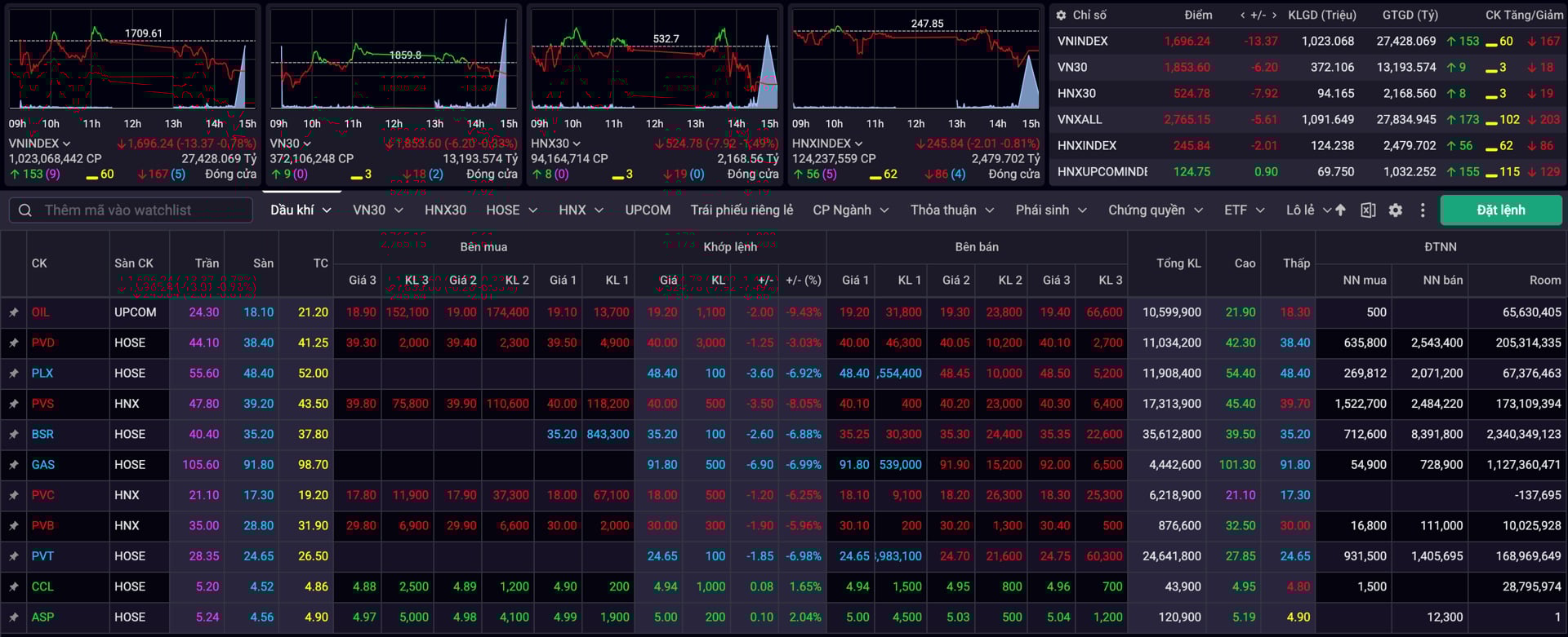 Cổ phiếu dầu khí lại bị ‘xả’, nhà đầu tư mua đuổi đối mặt rủi ro T+