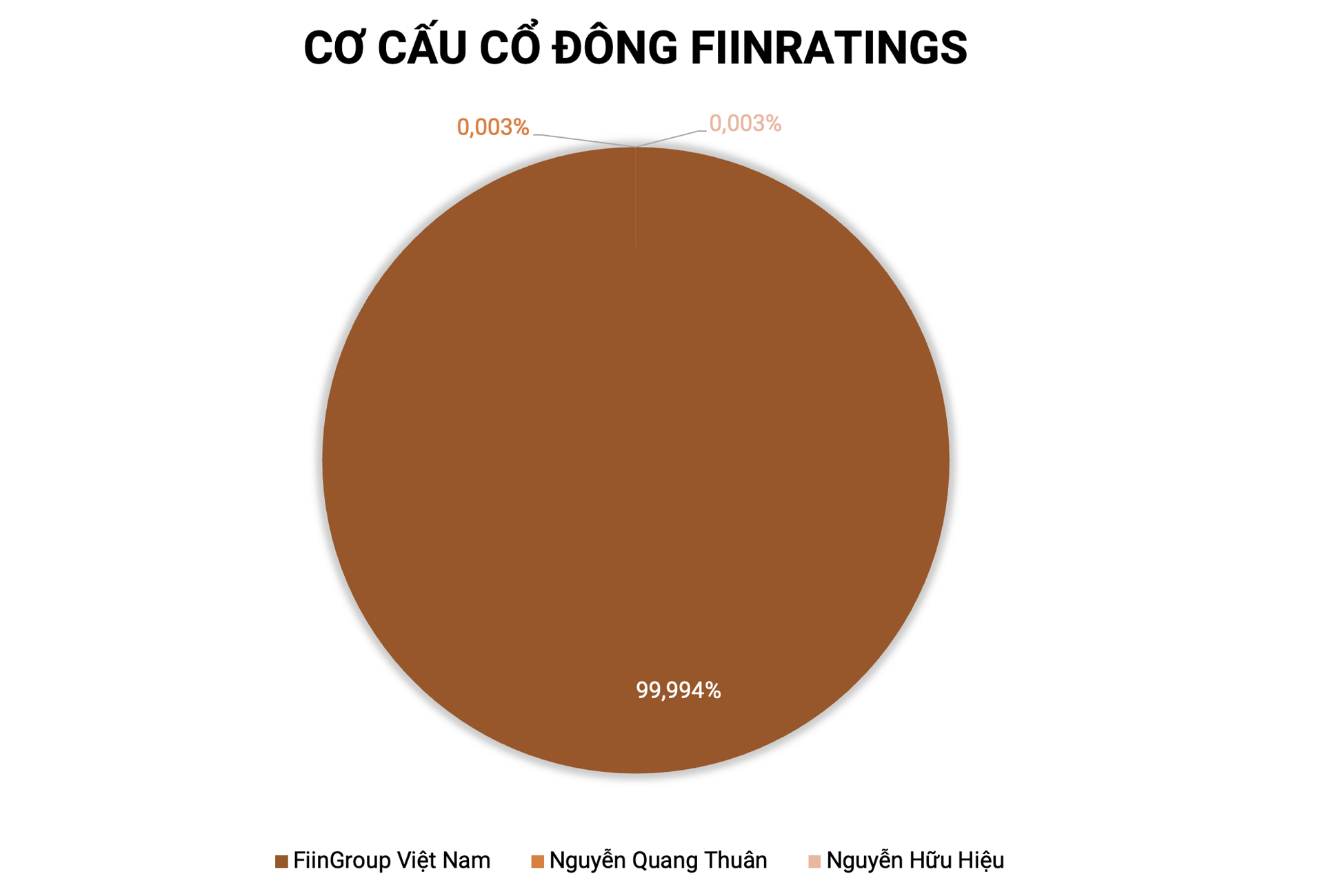Theo số liệu mới nhất, FiinRatings có số vốn điều lệ là 25 tỷ đồng. Trong đó, Công ty CP FiinGroup Việt Nam nắm giữ tỷ lệ gần như tuyệt đối với 99,994%. Hai cổ đông còn lại là ông Nguyễn Quang Thuân và ông Nguyễn Hữu Hiệu cùng sở hữu 75 cổ phần, tương ứng 0,003% vốn.