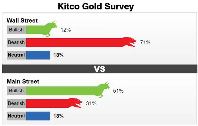 Với thực tế đó, tâm lý các nhà phân tích Phố Wall và các nhà đầu tư bán lẻ Phố Chính (Main Street) đều giảm sự lạc quan khi dự báo về giá vàng tuần tới. Mặc dù các nhà đầu tư bán lẻ vẫn lạc quan vào vàng trong ngắn hạn, nhưng tâm lý đã giảm mạnh so với tuần trước, khi 61% số người tham gia khảo sát dự báo giá sẽ tăng.