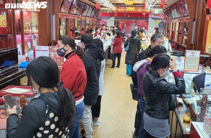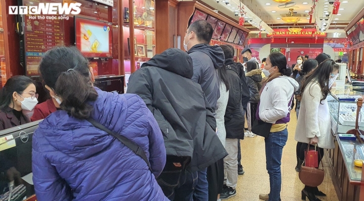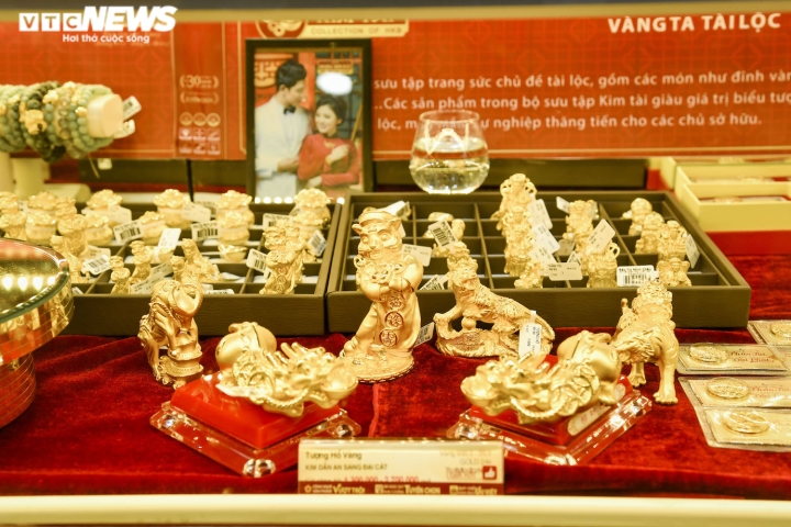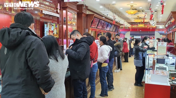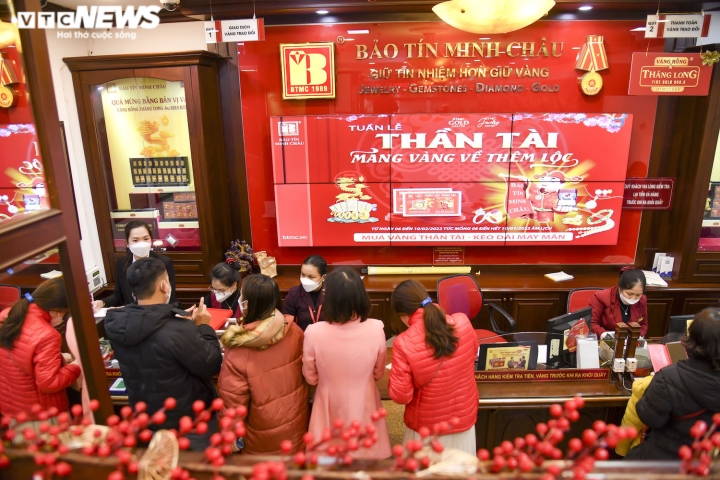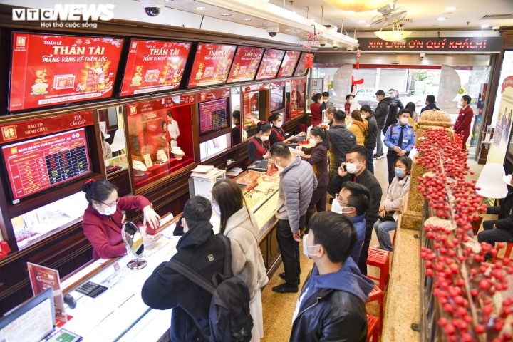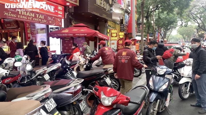 Sau nhiều ngày vắng lặng, sáng nay 8/2, “phố vàng” Trần Nhân Tông (quận Hai Bà Trưng, Hà Nội) náo nhiệt tiếng nhạc và đông đúc người dân kéo đến mua, bán vàng cầu may khi ngày vía Thần Tài cận kề, bất chấp mưa lạnh.Theo ghi nhận, tại cửa hàng Bảo Tín Minh Châu, nhiều người tranh thủ bán vàng kiếm lời khi giá vàng miếng SJC đang ở mức cao kỷ lục, vượt 63 triệu đồng/lượng.Giá vàng SJC bán ra được Bảo Tín Minh Châu niêm yết lúc 10h sáng 8/2 là 63,28 triệu đồng/lượng. Trong khi đó, giá vàng SJC mua vào được đơn vị này niêm yết ở mức 62,51 triệu đồng/lượng. Chênh lệch mua – bán là 770.000 đồng/lượng.Trong khi đó, không ít người cũng mua vàng cầu may nhân dịp ngày vía Thần Tài. Do đa phần chọn mua vàng 9999 hoặc 99.9 nên việc giá vàng SJC tăng hay giảm không ảnh hưởng đến nhu cầu mua bán trong dịp này.Anh Hoàng Lâm (trú tại quận Hoàn Kiếm, Hà Nội) cho biết sáng nay anh tranh thủ bán 5 lượng vàng mà anh đã mua cách đây vài tháng. Đồng thời, anh cũng mua luôn 2 chỉ vàng Thần Tài với mức giá được niêm yết là 5,635 triệu đồng/chỉ. Anh Lâm cho biết, theo giá quy đổi, dù vàng vỉ thần tài được bán đắt hơn vàng trang sức hơn 2 triệu đồng/lượng nhưng do chỉ mua 2 chỉ để lấy “vía”, cầu may nên anh cũng không quan trọng chuyện lỗ lãi gì.Trong khi đó, bà Đào Thu Hà, một khách hàng 70 tuổi có mặt tại tiệm vàng Phú Quý cho biết từ hơn chục năm nay, năm nào bà cũng mua 1 chỉ vàng 9999 và bán 1 chỉ vàng 9999. Bà cho biết việc mua bán của mình trong những ngày này không lời lãi gì mà chỉ là mua lấy may.Đa dạng các sản phẩm như vàng miếng, linh vật hổ vàng, bộ 12 con giáp bằng vàng hay vàng hình Thần Tài giá chỉ từ 1 triệu đồng/sản phẩm đã thu hút sự quan tâm của khách hàng.Dịp ngày vía Thần Tài năm nay, thương hiệu DoJi tung ra thị trường 30.000 sản phẩm vàng các loại, trong đó đồng vàng Kim Dần lên đến hàng trăm nghìn sản phẩm.Nhân viên trông xe của Bảo Tín Minh Châu phải rất vất vả trong hôm nay.Tuy nhiên, trái với cảnh mua bán nhộn nhịp ở các cửa hàng kinh doanh vàng có thương hiệu lớn, một số cửa hàng nhỏ lẻ khác cùng trên phố Trần Nhân Tông lại vắng vẻ. Thậm chí, hơn 10h mà một số cửa hàng vàng còn chưa mở cửa.