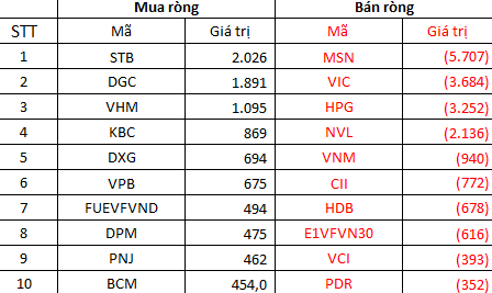 Xét riêng theo từng mã cổ phiếu, lực bán bán của khối ngoại tập trung tại các cổ phiếu như MSN, VIC, HPG, NVL với giá trị đột biến mỗi cổ phiếu đều trên 2.000 tỷ đồng; ngoài ra cũng tiếp tục bán ròng hàng trăm tỷ VNM, CII, HDB, E1VFVN30, VCI.