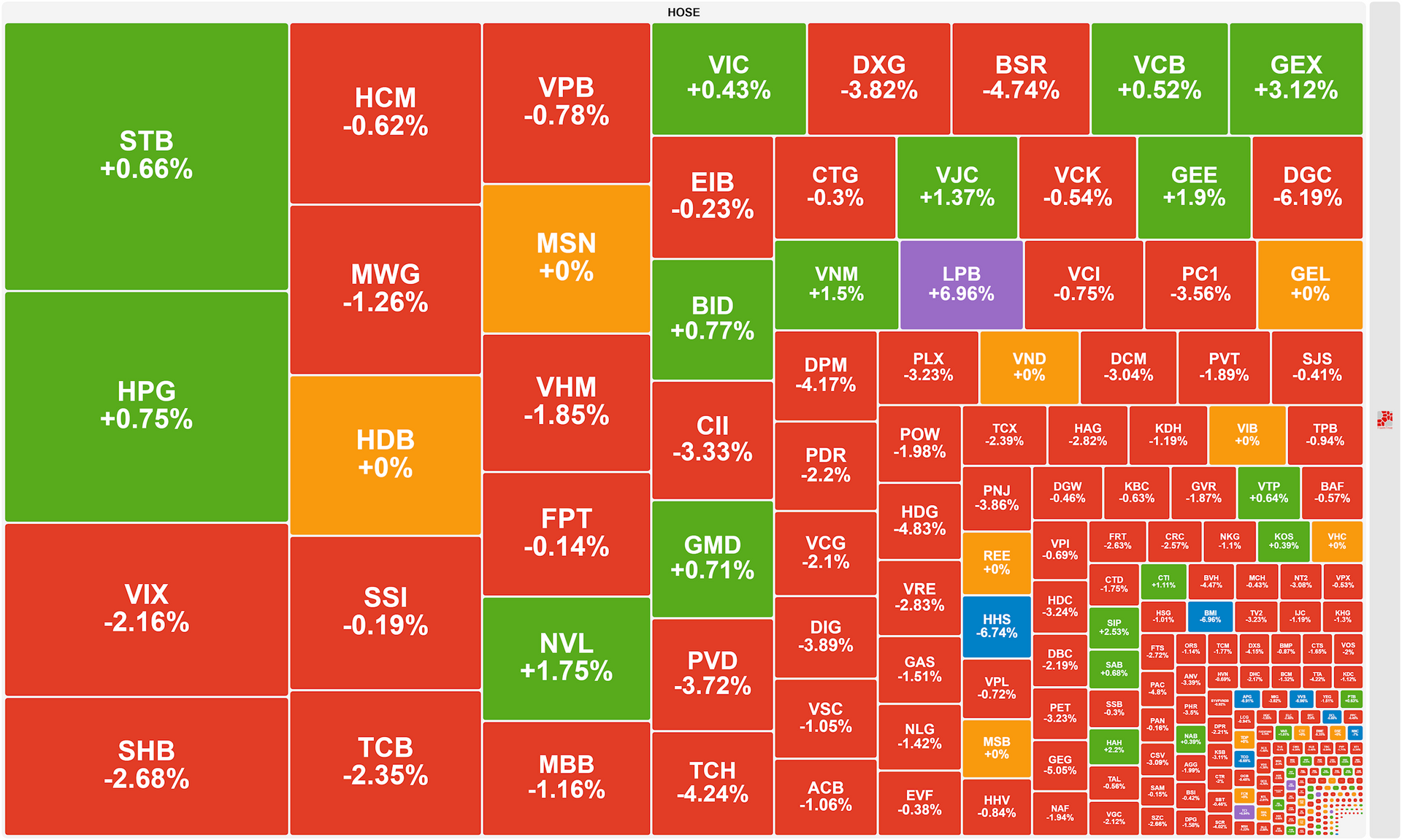 Điểm sáng hiếm hoi, mang lại chút sắc thái tích cực cho bảng điện tử chiều nay đến từ nỗ lực của một vài mã riêng lẻ. Đáng chú ý nhất là cổ phiếu LPB với màn trình diễn ấn tượng khi chạm mức giá trần, cùng với đó là sự kiên cường của GEX. Tuy nhiên, sự bứt phá của các mã này là quá nhỏ bé trước áp lực cung chiếm ưu thế trên diện rộng.