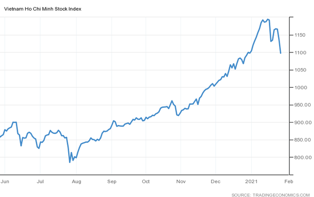 Chỉ với 2 phiên giảm sâu gần đây, VN-Index đã “bay hơi” toàn bộ thành quả đạt được từ đầu năm (kết năm 2020 tại 1.103 điểm).