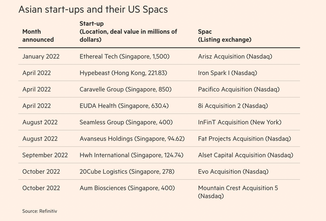 Các doanh nghiệp khởi nghiệp tại Singapore vẫn đang hướng ánh mắt tới việc hợp nhất với SPAC tại Mỹ như một xu thế, theo dữ liệu từ Refinitiv. Năm ngoái, ít nhất 8 công ty Singapore công bố kế hoạch hợp nhất với SPAC niêm yết trên sàn Nasdaq hoặc NYSE. Định giá ở Mỹ thường cao hơn châu Á, và thị trường này cũng thu hút sự quan tâm lớn từ giới phân tích cũng như các nhà đầu tư tổ chức. Nhưng cũng cần lưu ý rằng, “thời kỳ vàng” cho các thương vụ IPO và sáp nhập SPAC – chủ yếu trong nửa đầu năm 2021 – đã trôi qua.