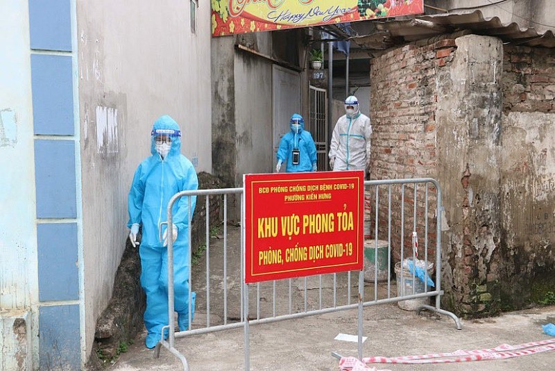 | Lực lượng chức năng phong tỏa khu vực có ca dương tính với SARS-CoV-2 tại phường Kiến Hưng, Hà Đông, Hà Nội ngày 22/9. (Nguồn: 24h) |