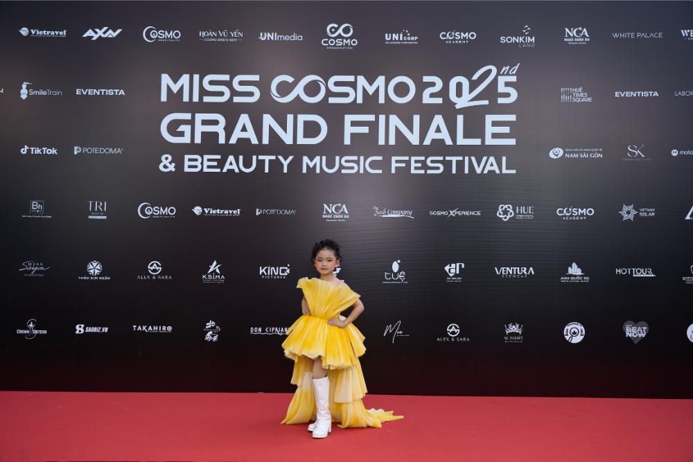 Song song với hình ảnh đáng yêu, Như Ý còn để lại dấu ấn rõ nét về phong cách thời trang tại Miss Cosmo 2025. Ở mỗi sự kiện, cô bé đều xuất hiện với trang phục được lựa chọn kỹ lưỡng, phù hợp tinh thần chương trình. Trên thảm đỏ, dù là gương mặt nhỏ tuổi nhất, Như Ý vẫn giữ phong thái tự nhiên, tự tin tạo dáng khi đứng cạnh các người đẹp quốc tế.