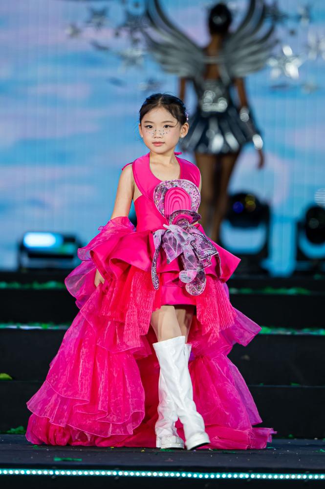 Trong vai trò Đại sứ hình ảnh, Như Ý tự tin catwalk trong thiết kế hồng fuchsia cỡ lớn của NTK Trinh Châu. Giữa tiết trời Đà Lạt se lạnh, cô bé vẫn giữ được phong thái vững vàng và thần thái đúng tinh thần lễ hội, tạo nên điểm nhấn riêng trên sân khấu ngoài trời.