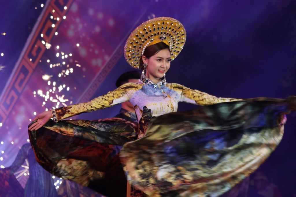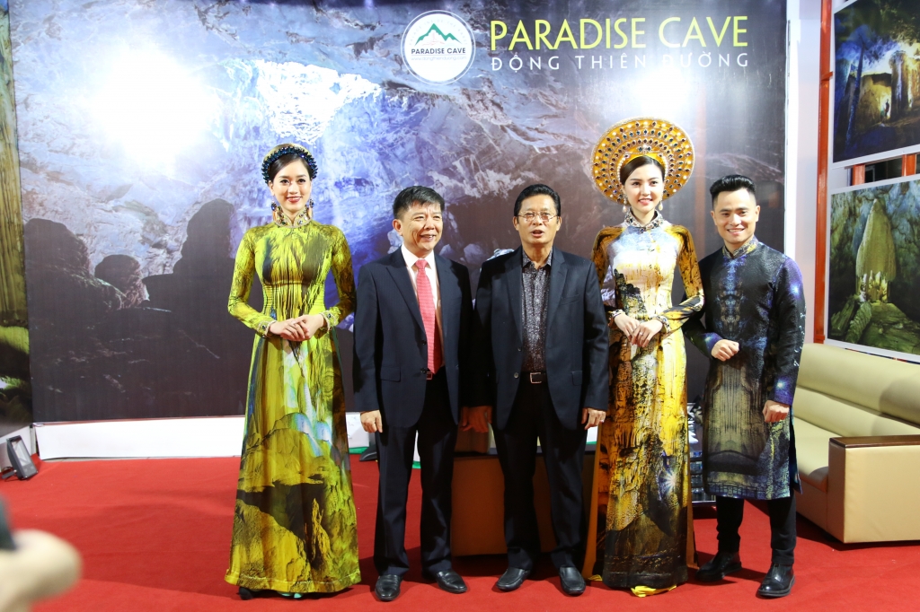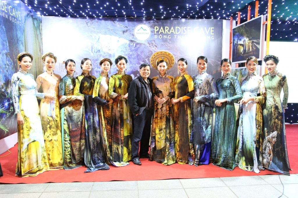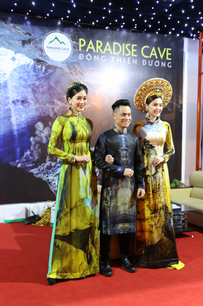 Nữ hoàng sắc đẹp toàn cầu 2016 Ngọc Duyên đảm nhiệm vai trò người mẫu Veddet cho BST Áo dài lấy cảm hứng từ vẻ đẹp của động Thiên Đường – Quảng Bình. Cô rất tự hào và hạnh phúc khi được trình diễn trong sự kiện ý nghĩa này.