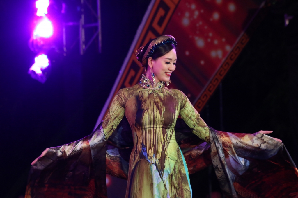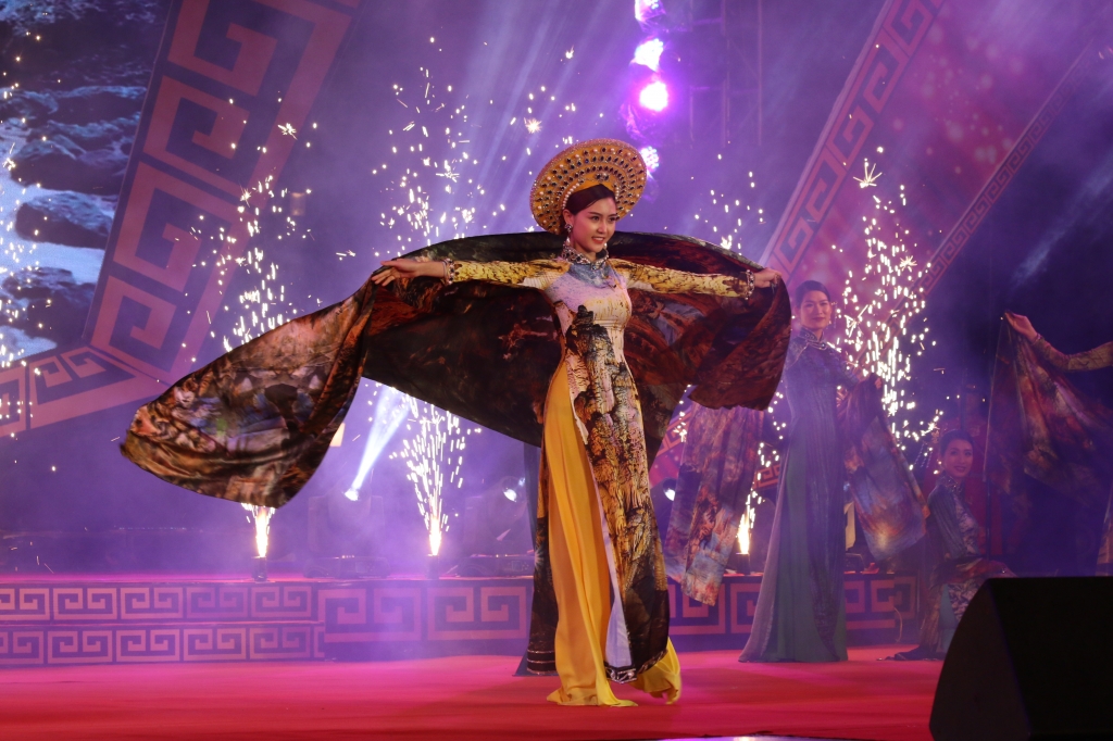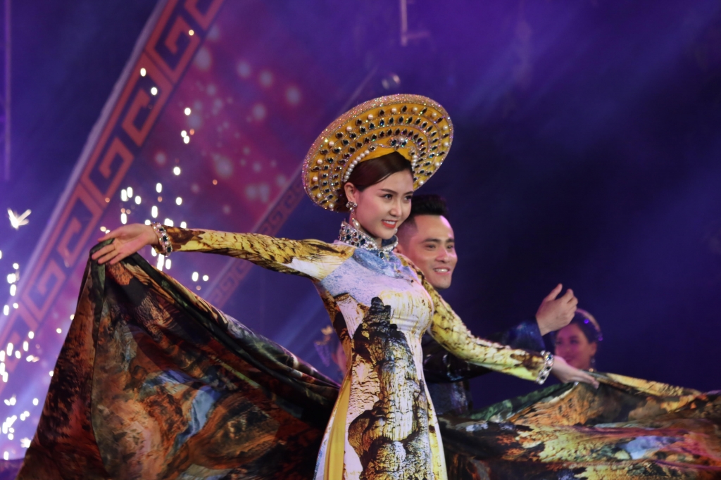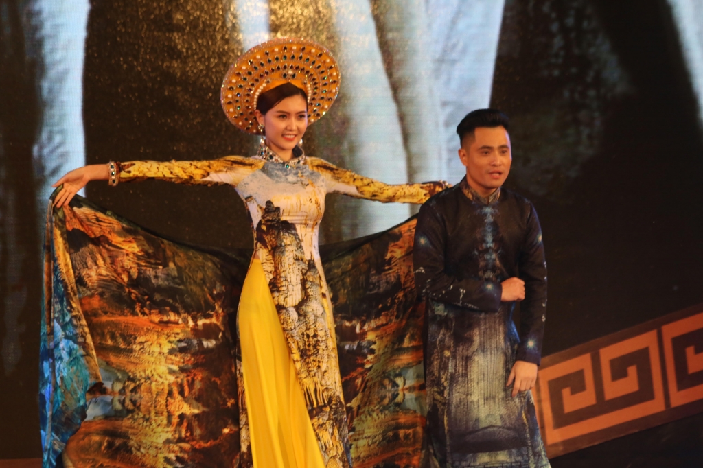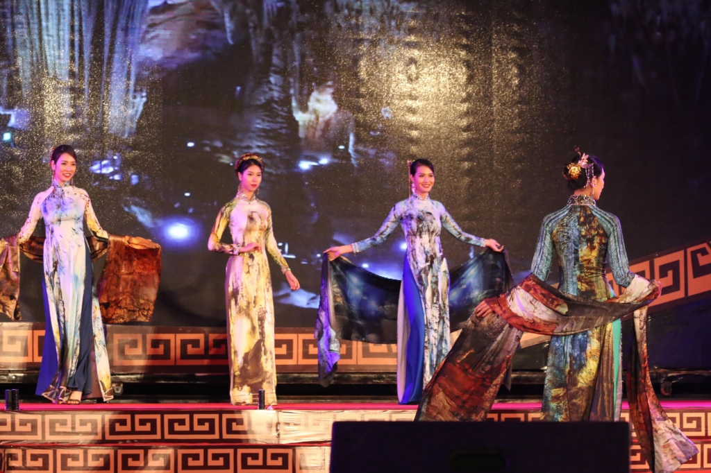 Tại đêm khai mạc Quảng Bình trong lòng Hà Nội. Những chiếc áo dài duyên dáng được trình diễn đầy ấn tượng góp phần đưa khung cảnh Quảng Bình đến gần hơn với du khách trong và ngoài nước.