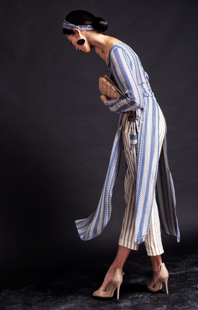 BST lần này của thương hiệu thời trang An Nhiên chú trọng cả về mặt họa tiết và kiểu dáng. Những bộ cánh gợi ý trong sự kết hợp thú vị giữa phần áo xẻ tà và quần tây ống rộng giúp cho phái đẹp trở nên cá tính, phóng khoáng hơn bao giờ hết. Chú ý trong BST mới chính là phần lưng và cổ áo, không nghiêm ngặt tuân thủ những quy ước của thời trang Á Đông cho chị em phụ nữ, An Nhiên cho thấy dù vai thon gầy hay những cô nàng tròn quyến rũ đều có thể phù hợp với thiết kế của mình.