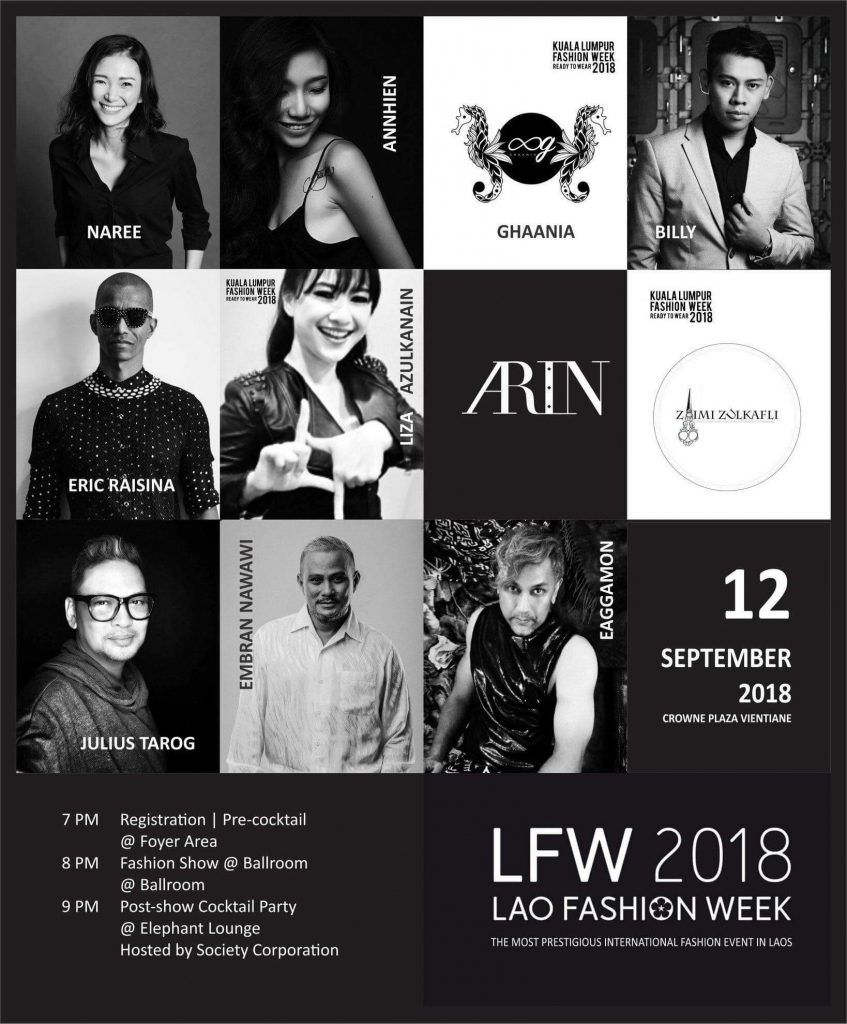 Trong Lao Fashion Week 2018 sẽ có hơn 30 NTK từ các nước về tham gia: Úc, Hồng Kong, Singapore, Malaysia, Thái Lan, Philippines, Indonesia, Cambodia, Việt Nam… Việt Nam có 3 NTK là An Nhiên, Quốc Bình và Diệu Anh.