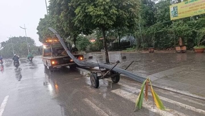 Chiếc xe tự chế chở theo bó sắt dài gần 12m va chạm với xe máy trên đường Trịnh Văn Bô (quận Nam Từ Liêm, Hà Nội) khiến nam thanh niên 22 tuổi tử vong.